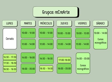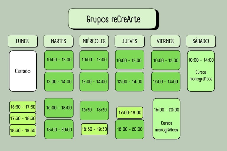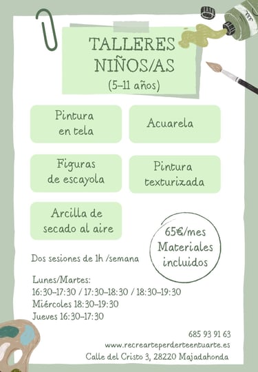 Estos talleres se irán anunciando en esta misma sección de la web y en instagram (recrearte.perderte_en_tu_arte) e irán cambiando semanal o mensualmente.