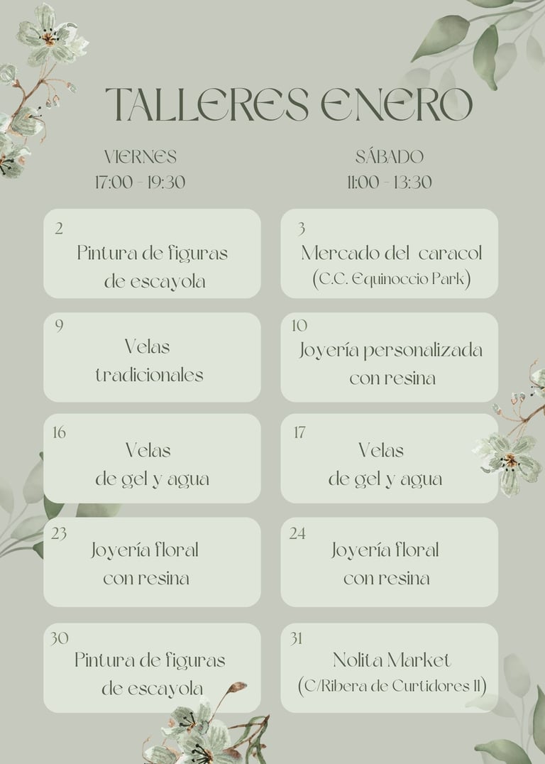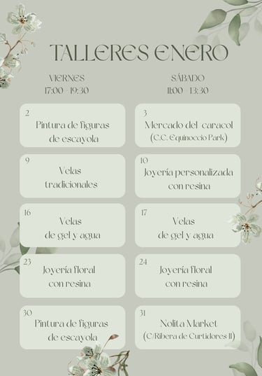 Precio taller: según la figura escogida (10 - 18 €)